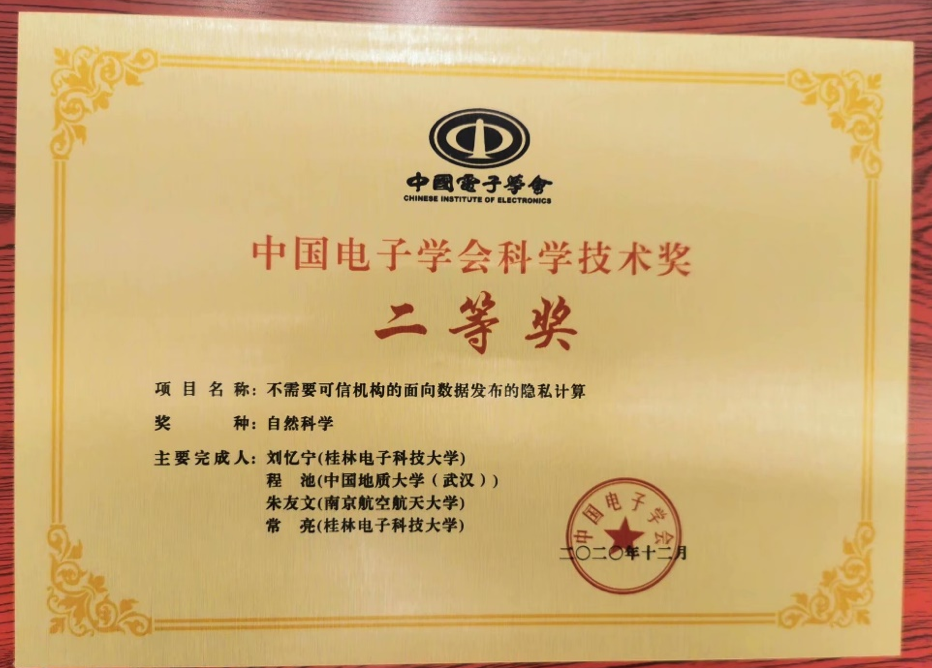 (通讯员:章丽平)2021年4月17-18日,中国电子学会2020年度科学技术奖励大会在重庆举行。成人色情 信息安全系程池老师与桂林电子科技大学、南京航空航天大学的学者共同完成的“不需要可信机构的面向数据发布的隐私计算”荣获2020年度中国电子学会科学技术奖自然科学二等奖。郝跃院士、刘明院士等23位院士出席大会并颁奖。