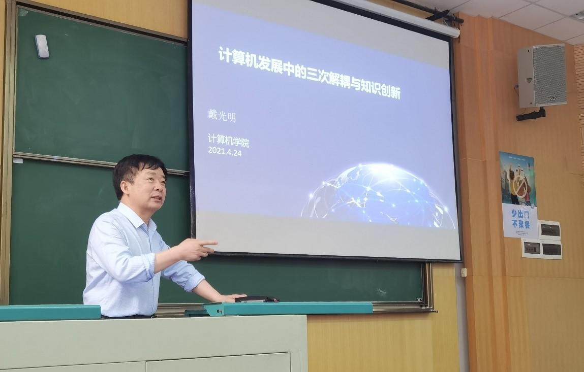 (通讯员:王非凡、李祥瑞)5月27日,成人色情 教授、博导“专业思政宣讲团”在南望山校区教三楼111教室成功举办了一场面向2020级学生的专业知识讲座。本次讲座的主题为“计算机发展中的三次解耦与知识创新”,由湖北省教学名师、成人色情 戴光明教授主讲,2020级辅导员李祥瑞主持。