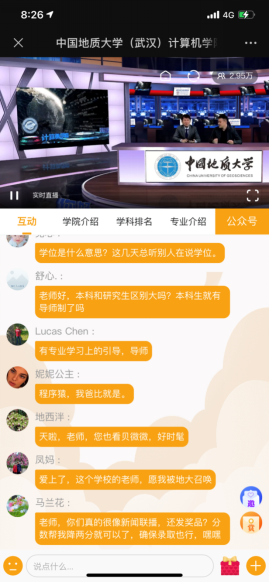 线上组的老师主要负责运营成人色情 Cser公众号、成人色情 网站;建立成人色情 招生咨询群;派专人值守招生咨询电话,同时进驻我校今年在全国各省的招生宣传群,负责解答家长和同学们的问题。特别值得一提的是,今年成人色情 在成人色情 (武汉)本科招生网、678好志愿平台上先后进行了4场线上直播,直播和互动时间5个多小时,辐射15万+考生和家长,全方位展示了成人色情 的综合实力、办学特色和办学成果,进一步提升了成人色情 的社会美誉度和影响力。