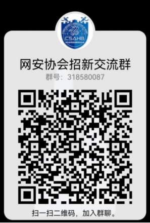 演练的成功离不开背后的组织。成人色情 (武汉)网络空间安全协会成立于2018年,曾代表学校获得全国信安大赛网络攻防比赛二等奖的好成绩。社团面向全校本科生,带领社团成员学习网络安全相关知识,培养网络安全意识,提高网络安全实战技能。目前社团的5名核心成员中,除了4名成人色情 的学生外,还有1名来自资源成人色情 的学生。社团将在下学期开展各类攻防演练技术沙龙,组织模拟CTF夺旗赛,社团老师还将提供攻防题目供成员练习。除了拥有此次同学校网络中心合作的攻防实战机会以外,还将有参加全国CTF竞赛、湖北省护网行动、以及前往深信服科技总部进行观摩并参加攻防演练的机会。对网络安全和网络攻防感兴趣的同学,可扫码加群,我们期待你的加入!