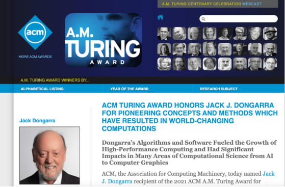 “Dongarra通过对线性代数运算的高效数值算法、并行计算编程机制和性能评估工具的贡献,引领了高性能计算的世界。”ACM介绍道。