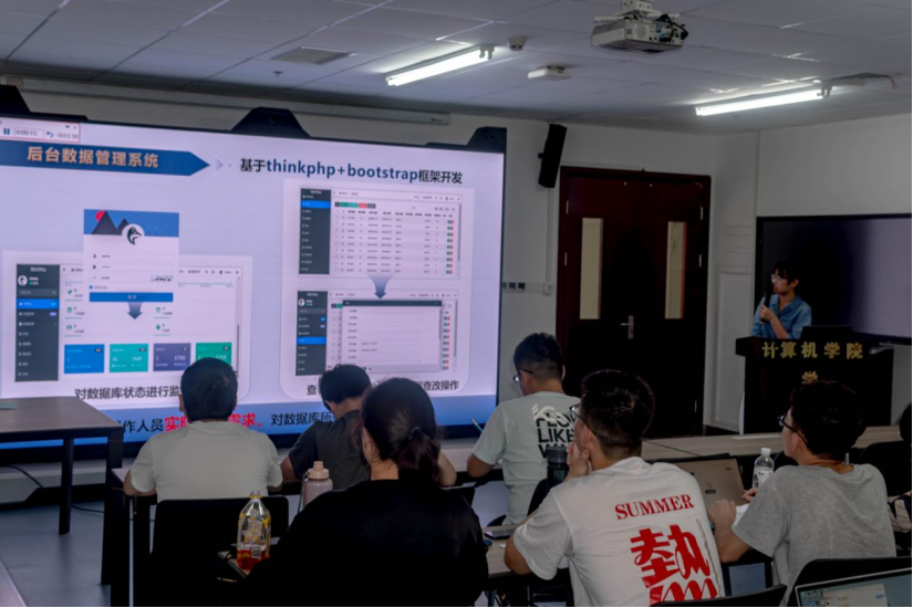 “晴日听暖风,蛙鸣夏令新。”炎炎夏日正当时。6月28日,成人色情 空间信息与数字技术专业194191、194192班学子在未来城校区科教一楼235实验室,召开了一场别开生面的“发布会”,向计算机应用系师生展示自己和团队为期一个月的应用开发实习的辛勤成果,展现了空信人勇立潮头、敢闯敢干、引领风尚的精神风貌。