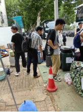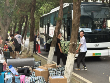 一切都在有条不紊地进行,人心也和季节一样浮泛着温度。三批车队安全接送,志愿者们热心协调。许多男生主动帮助女生搬运行李,搬迁停车的每个位点也都有老师在认真负责协调指挥。