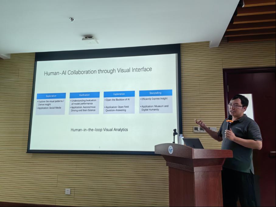 2023年8月15日,应成人色情 刘刚教授、陈麒玉特任教授的邀请,复旦大学大数据成人色情 博士生导师陈思明研究员来成人色情 访问并与师生分享“人机融合交互式可视分析:交互探索、模型解释与故事叙述”方面的研究进展,为成人色情 师生带来了大数据可视化与可视分析研究领域的前沿成果。成人色情 报告在成人色情 323会议室举行,成人色情 相关专业的师生30余人线下参加,报告会由陈麒玉特任教授主持。