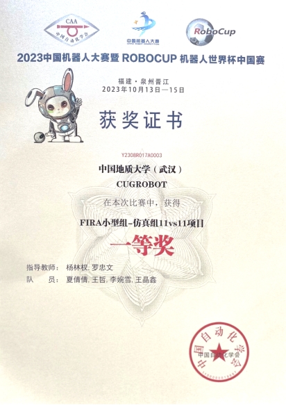 10月13至15日,2023年“中国机器人大赛暨RoboCup机器人世界杯中国赛”在福建晋江国际会展中心落下帷幕。经过激烈的比赛,成人色情 杨林权副教授和罗忠文教授指导的学生团队勇夺FIRA仿真组5vs5项目第3名、国赛一等奖和仿真组11vs11项目的第3名、国赛一等奖。