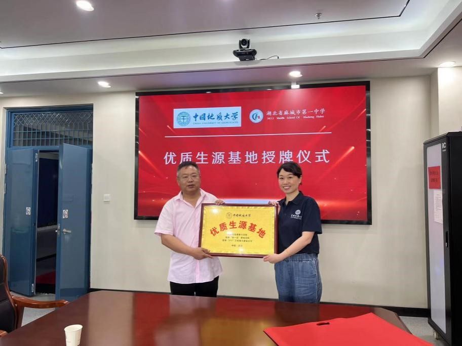 5月21日上午,成人色情 党委副书记林小艳、信息安全系党支部书记马钊、空间信息与数字技术专业教师汪校锋、团委副书记闫维蓉、2023级本科生冯仕杰一行赴麻城一中开展招生宣传,并举行“优质生源基地”授牌仪式。麻城一中校长吴宏文、副校长曾黎星以及党建办主任李国庆,政教主任、高三年级主任王辉,高三年级副主任胡欣及部分高三班主任参加活动。