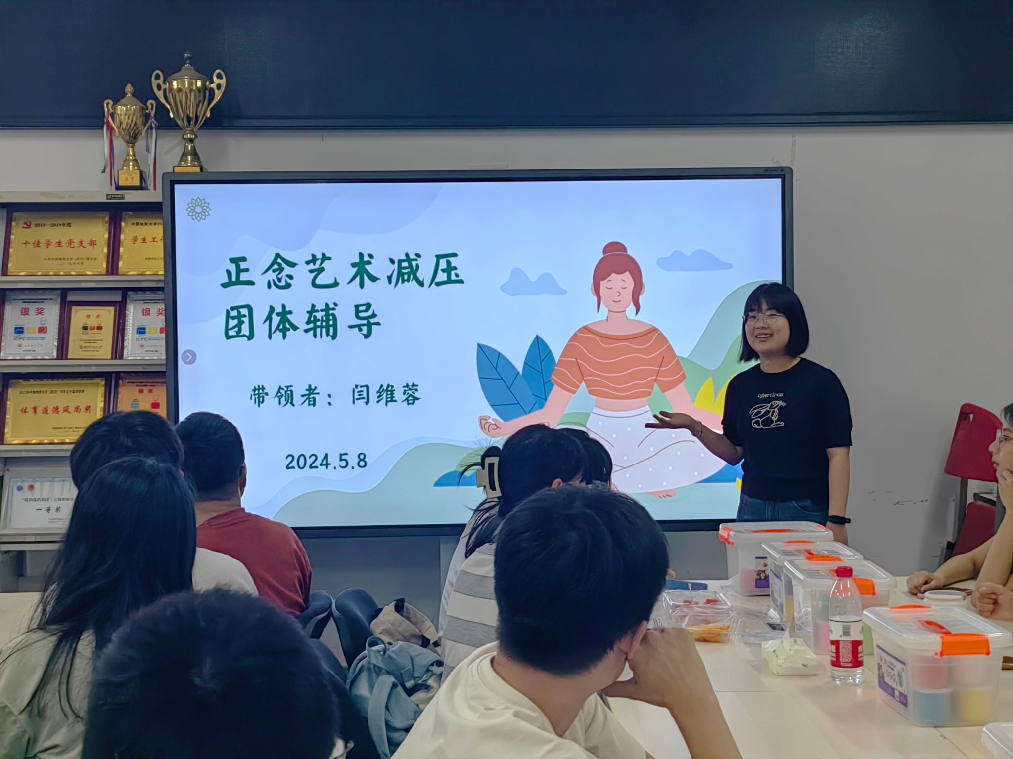 在5·25全国大学生心理健康日来临之际,为丰富成人色情 心理健康成人色情-华人色情-国外色情 活动,引导学生关注和呵护自身的身心健康,缓解工作学习带来的压力和紧张焦虑情绪,5月8日晚上,由成人色情 E心为你二级心理辅导站举办的5·25心理健康月系列活动之正念艺术减压团体辅导在成人色情 大楼101举行。成人色情 党委副书记林小艳和20余名师生参与本次活动,活动由成人色情 心理健康辅导员闫维蓉带领。