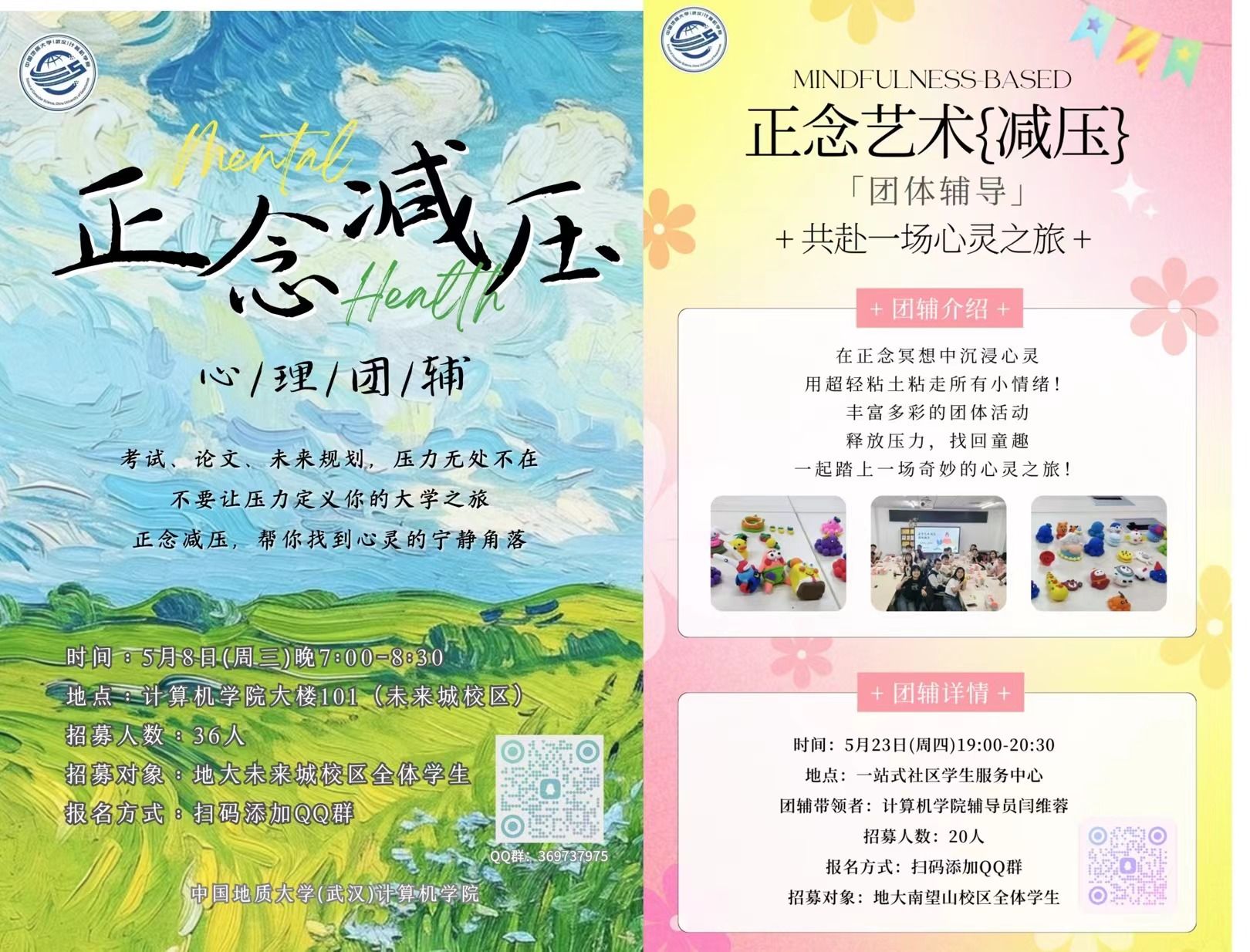 5月8日、5月23日晚上,成人色情 心理健康辅导员闫维蓉分别在未来城和南望山校区开展了两场正念艺术减压团体辅导活动,通过团辅,同学们不仅学习到了正念的基本理念和实践技巧,更在粘土减压活动中缓解了工作学习中的压力与负面情绪。