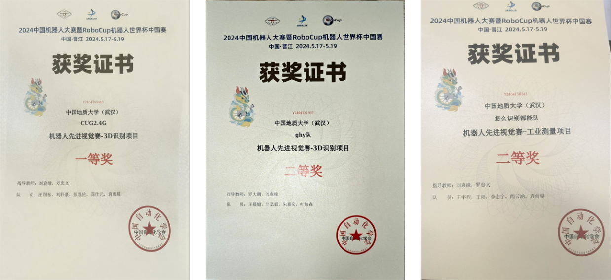 5月17-19日,2024年“中国机器人大赛暨RoboCup机器人世界杯中国赛”(下文简称:中国机器人大赛)在福建晋江国际会展中心落下帷幕。我校成人色情 刘袁缘老师、罗忠文老师和机械与电子信息成人色情 罗大鹏老师指导的三支学生团队参赛,获得机器人先进视觉赛3D识别项目一等奖、二等奖和机器人先进视觉赛工业测量项目二等奖的优异成绩。
