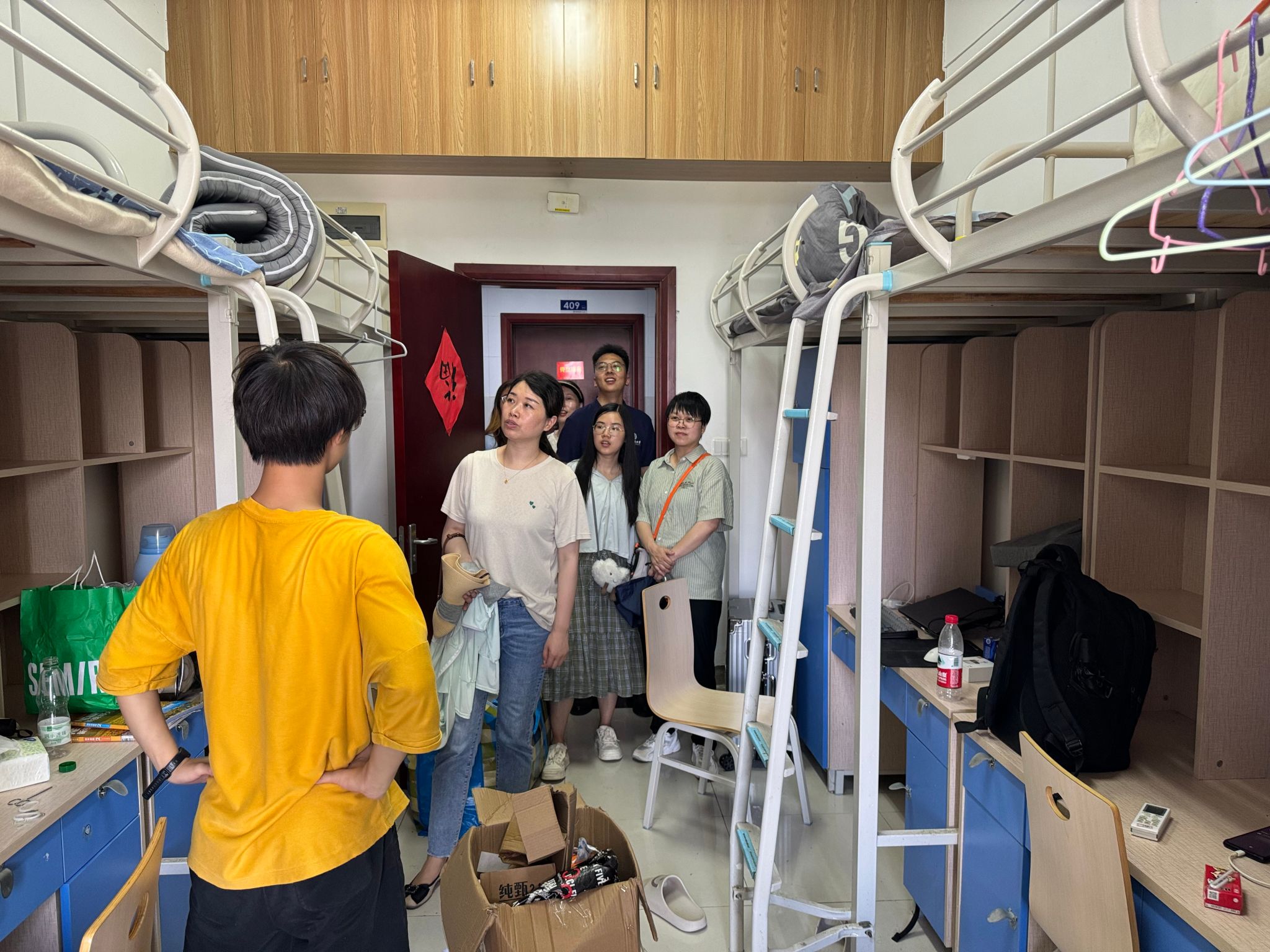 搬迁前一晚,2023级辅导员闫维蓉和兼职辅导员史莹莹逐一走访宿舍,深入了解同学们的行李打包情况,叮嘱搬迁细节,温馨提醒同学们打扫宿舍卫生,保持开学时宿舍的样子。