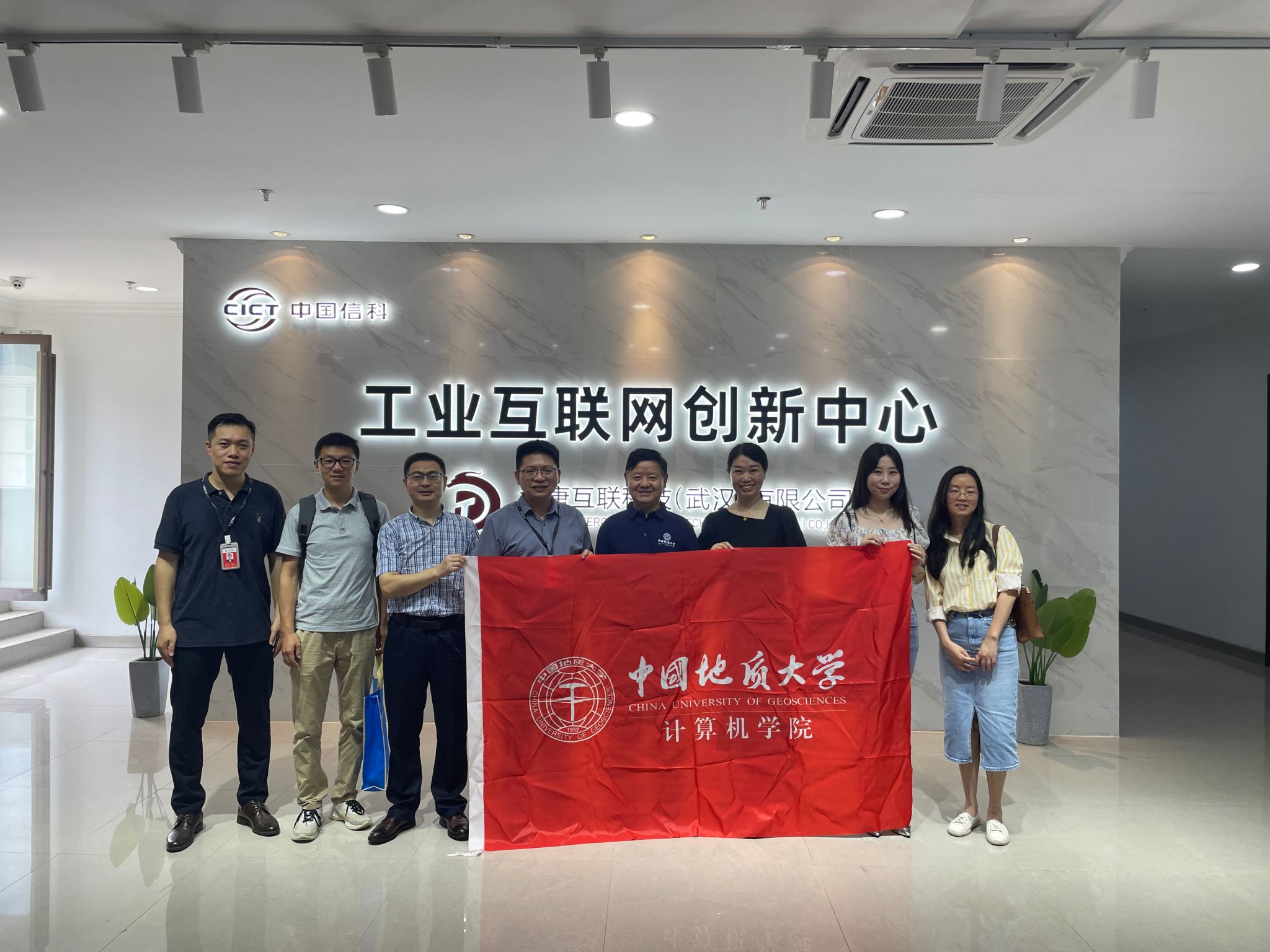 为促进成人色情 实习实训和就业工作,8月2日,成人色情 党委书记李国昌、党委副书记林小艳、成人色情 团委副书记孙琨、人工智能系教师刘袁缘、办公室主任卢笙一行5人,赴大唐互联科技(武汉)有限公司开展工作调研和访企拓岗活动。