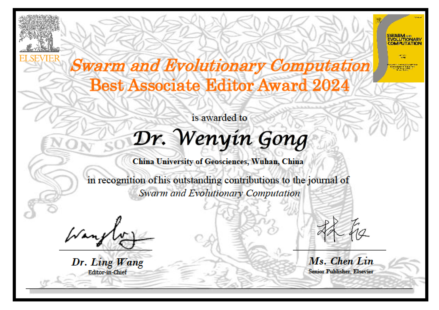 爱思唯尔(Elsevier)出版社依据稿件处理数量、质量以及效率等多方面情况进行综合评价,从该期刊的66名副编中遴选出5位,并授予此项奖项。这5位副编在确保评审过程严格且高效方面发挥了重要作用,助力提升了期刊的质量以及内容的完整性。龚文引教授凭借在相关工作中的出色表现,成功入选并获得这一奖项,不仅是对其个人在期刊编辑工作方面专业能力与敬业精神的认可,同时也有助于提升我校在群体智能与进化计算领域的影响力。