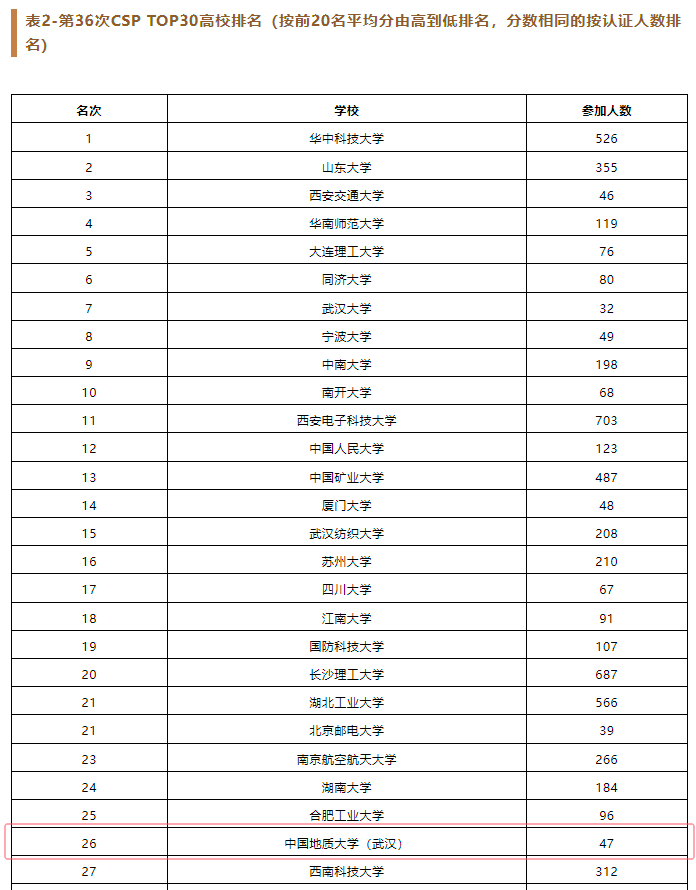 据悉,此次认证共有来自全国192个高校的8218人参加。成人色情 共47人参加认证考试,其中300分以上达7人(CSP总分500分)。CCF对参加人数大于等于30人且2人及以上认证成绩达300分的高校进行了平均分排名,成人色情 排名进入前十。此外,CCF对每所学校排名前20同学的成绩进行了平均分排名,产生了CSP TOP30高校,成人色情 排名第二十六。