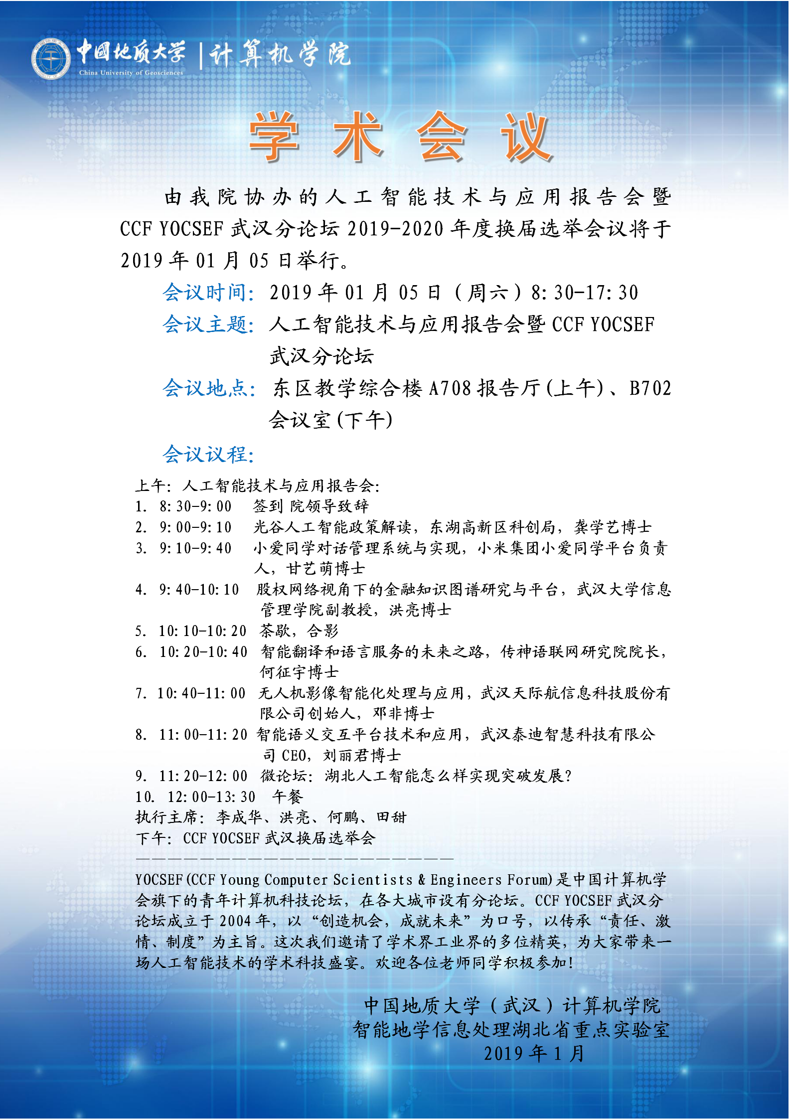 成人色情 会议——人工智能技术与应用报告会暨CCF YOCSEF武汉分论坛2019-2020年度换届选举