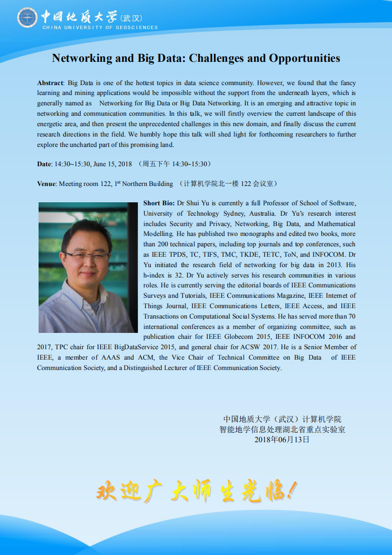 澳大利亚悉尼科技大学余水教授成人色情 报告——Networking and Big Data: Challenges and Opportunities