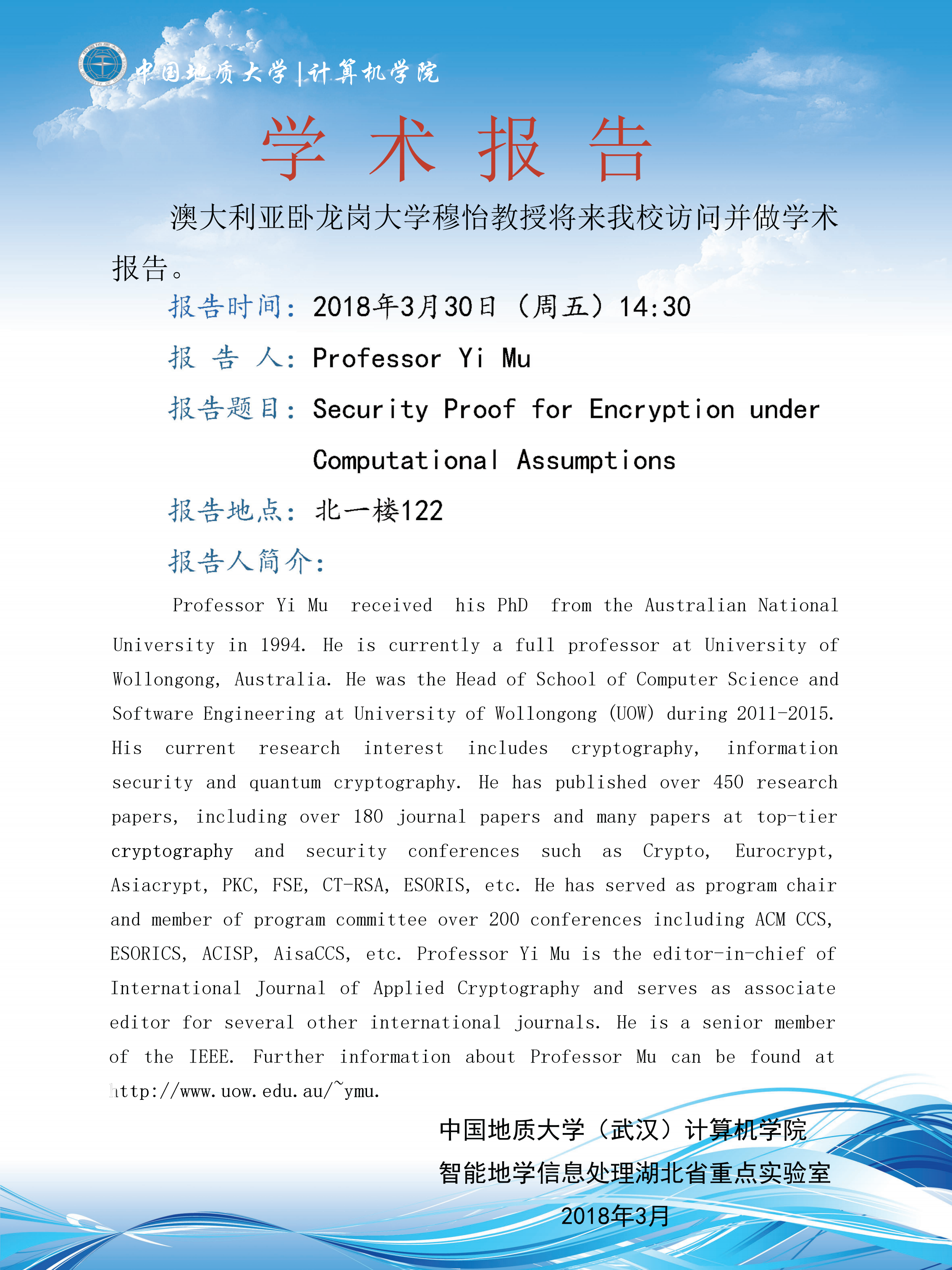 成人色情 报告——澳大利亚卧龙岗大学穆怡教授:基于计算假设的安全性证明