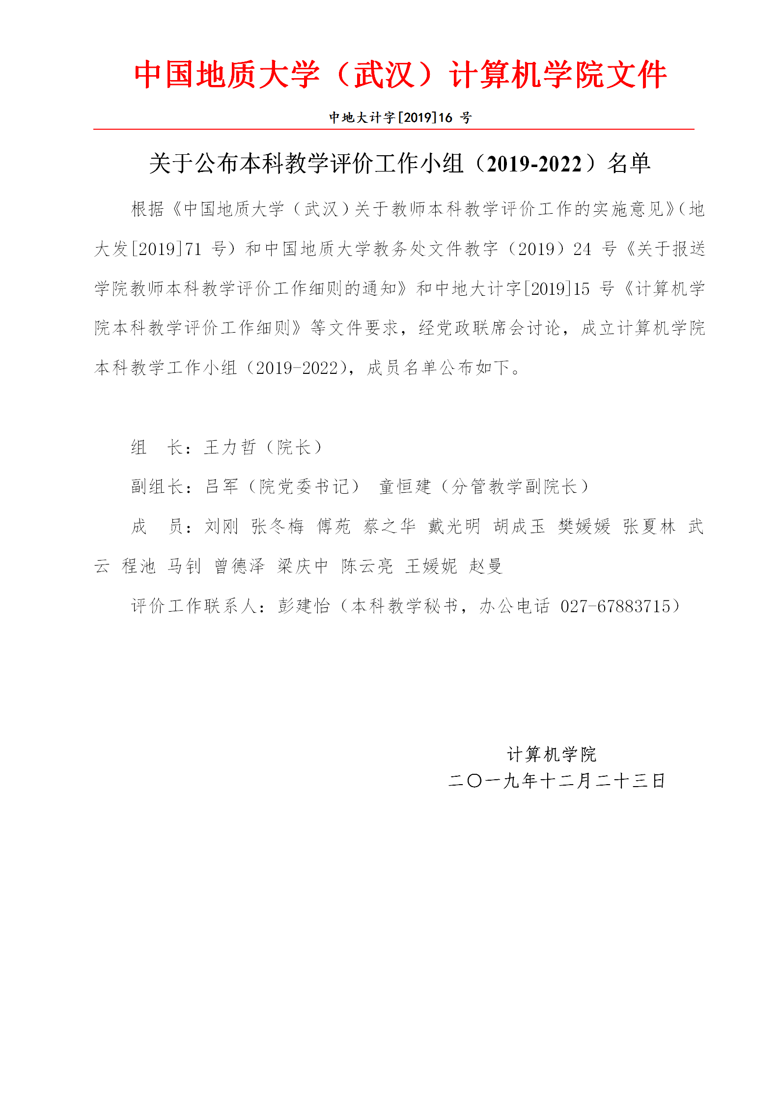 成人色情 关于公布本科教学评价工作小组(2019-2022)名单
