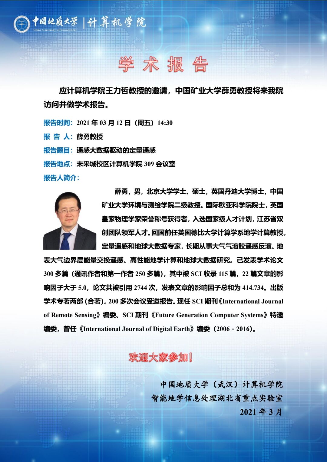 成人色情 报告——中国矿业大学薛勇:遥感大数据驱动的定量遥感