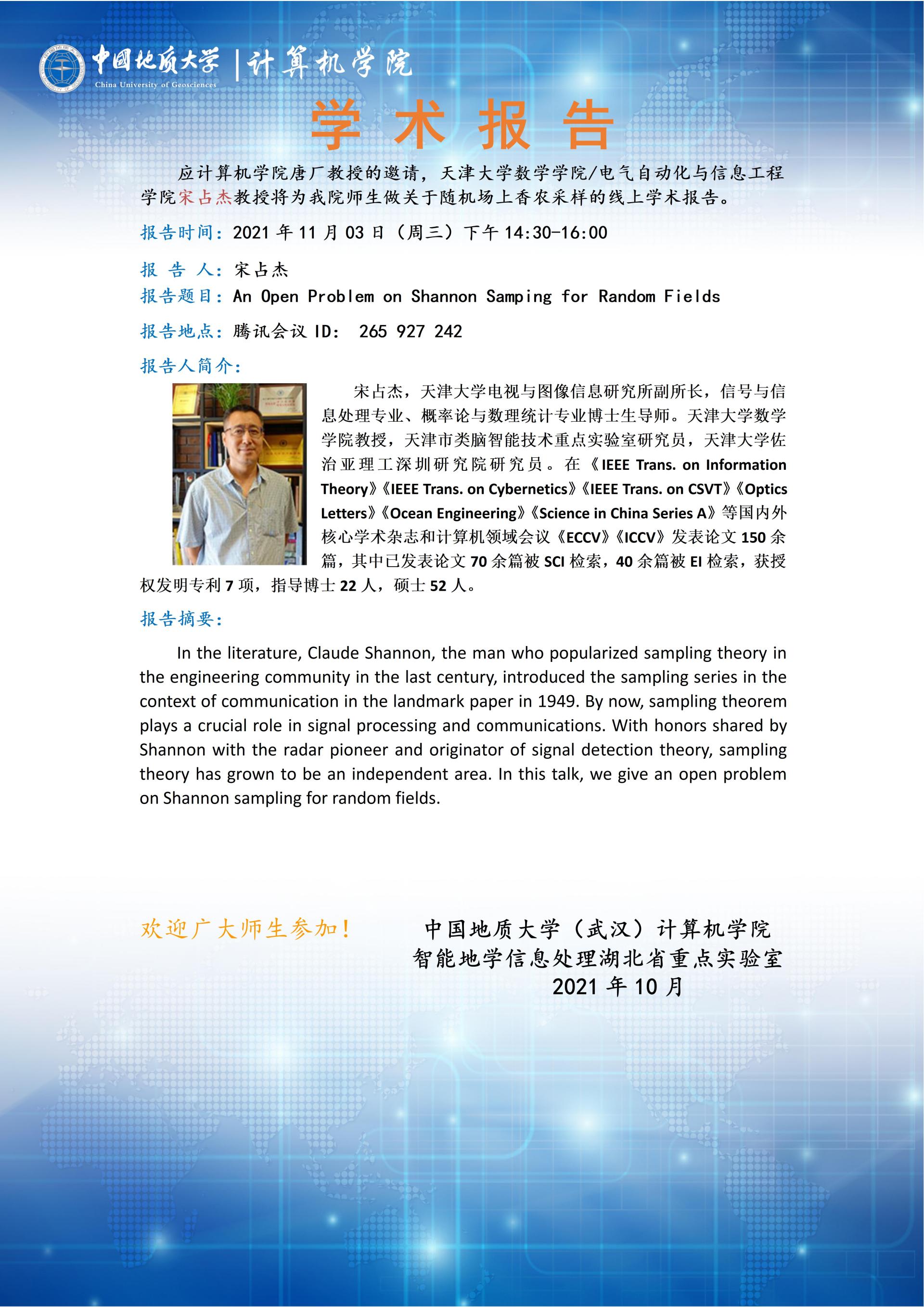 成人色情 报告——天津大学宋占杰:An Open Problem on Shannon Samping for Random Fields
