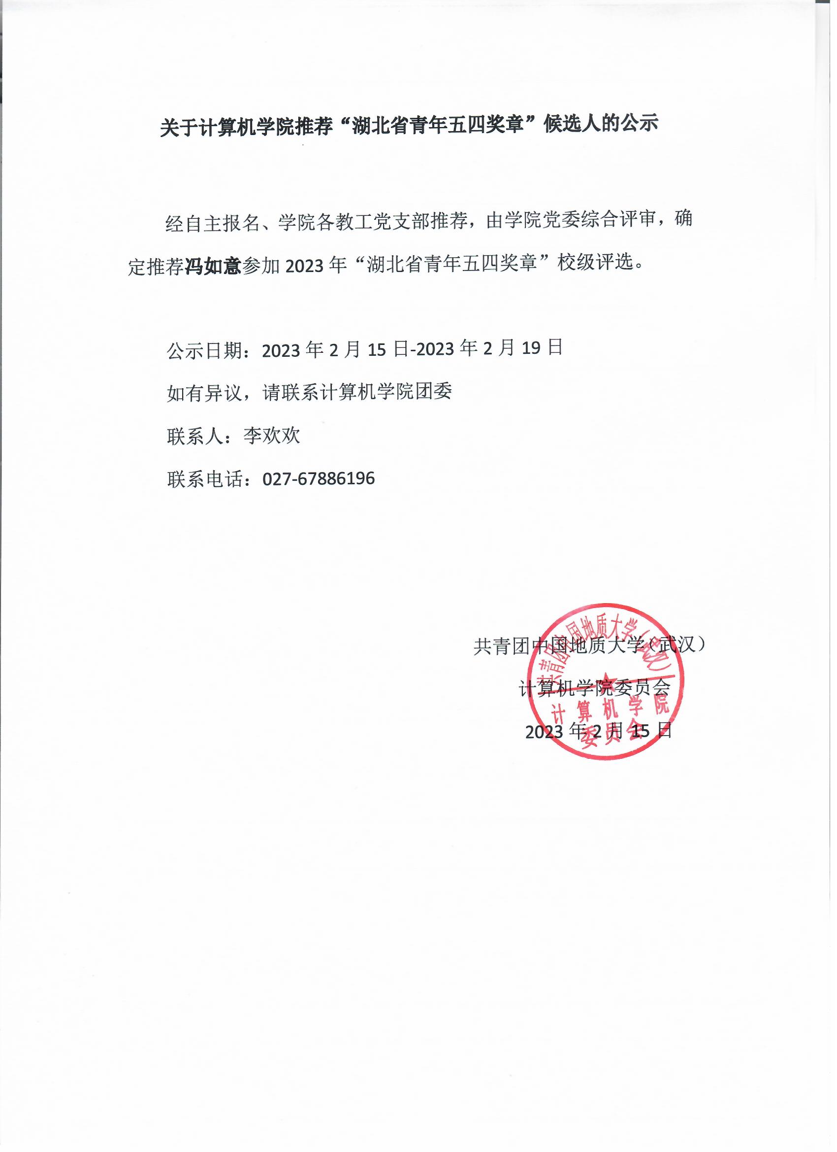 关于成人色情 推荐“湖北省青年五四奖章”候选人的公示