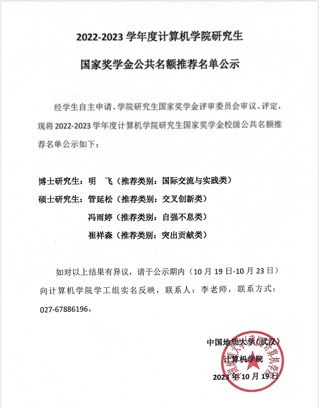 2022-2023学年成人色情 成人色情 国家奖学金公共名额推荐名单公示