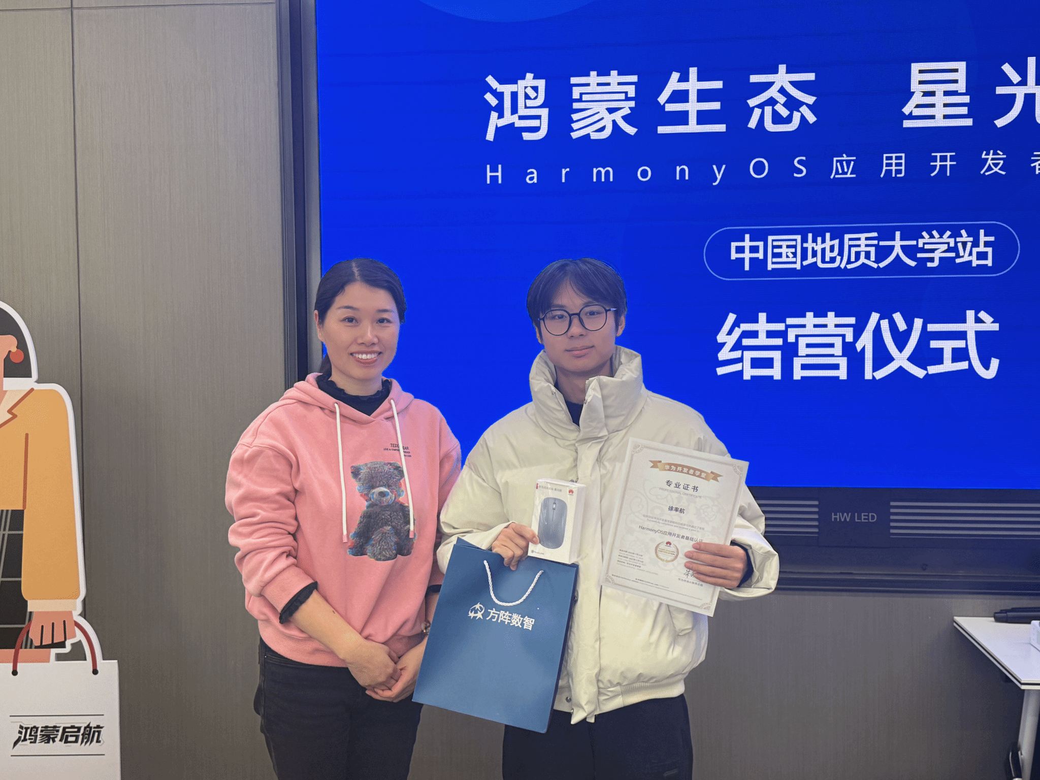结业仪式上,在成人色情 与鸿蒙生态(武汉)创新中心及武汉方阵信息技术有限公司三方代表的共同见证下,为本次培训中表现优秀的学员们颁发荣誉证书及奖励。方阵集团鸿蒙人才培养负责人马剑威充分肯定学员表现,期待更多学子成为鸿蒙生态的新生力量,方阵数智将继续助力学员不断探索鸿蒙技术,搭建产学研深度融合的重要桥梁。成人色情 党委副书记林小艳说,此次培训是成人色情 推动“校企协同育人”走深走实的重要举措,希望同学们珍惜学习机会,将今天的所见所感,内化为明日刻苦钻研的动力,积极投身于智能科技的时代浪潮。