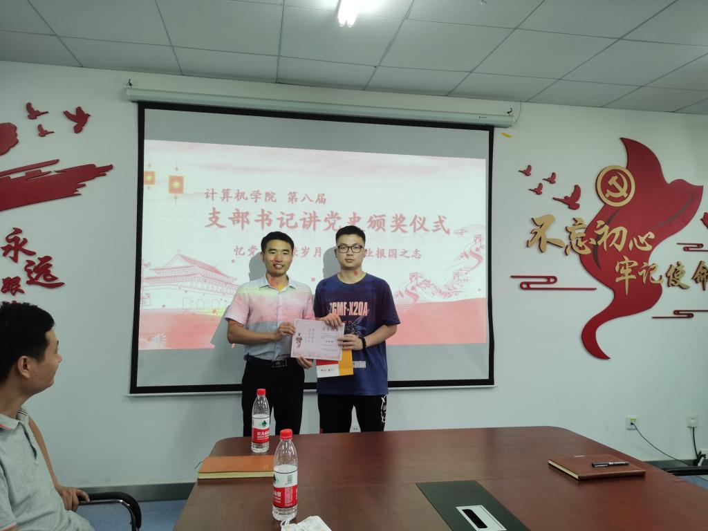 仪式开始。王太茂为本科生计科第一党支部支部书记于恩承颁发优胜奖。