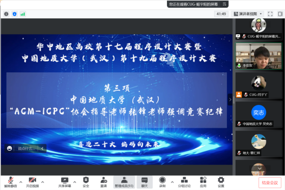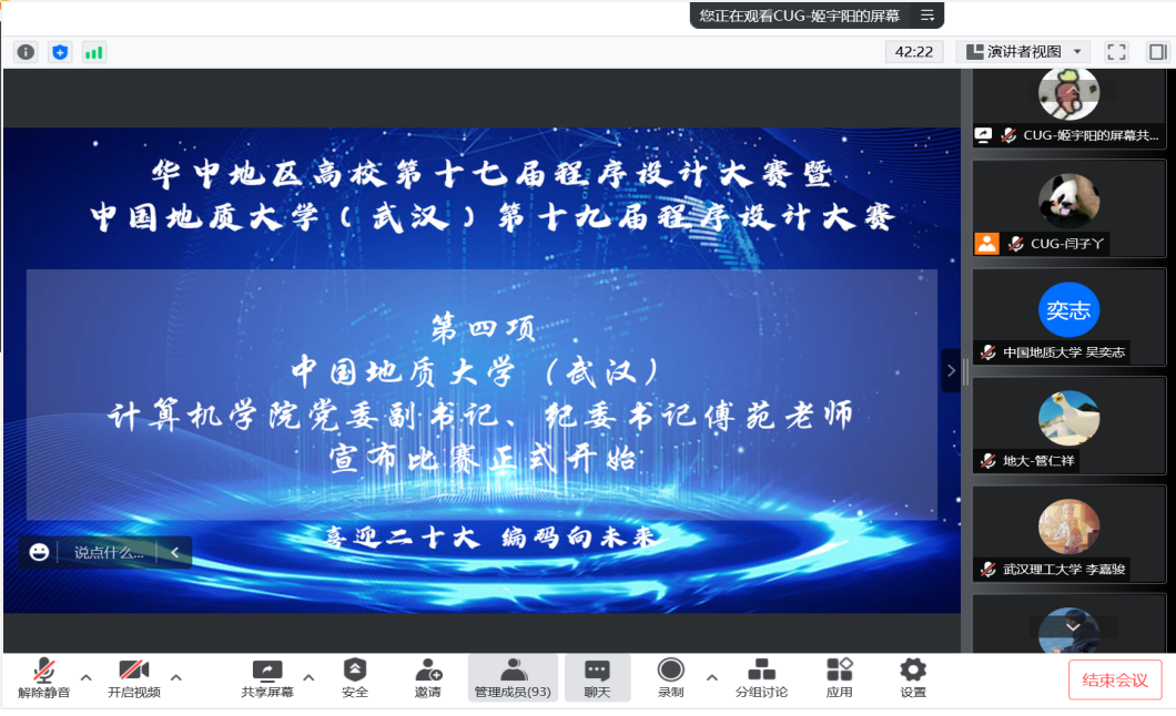 活动伊始,李国昌致开场辞。他代表地大成人色情 向所有参赛选手表示欢迎,介绍了成人色情 ACM系列活动开展情况和“ACM-ICPC”协会的发展历程,2021年协会突破历史,获得ACM-ICPC亚洲区域赛金奖。希望同学们在本次比赛中取得佳绩,在未来学习中立科技兴国之志,谋专业报国之实,争做时代先锋,为实现中华民族伟大复兴贡献青春力量。