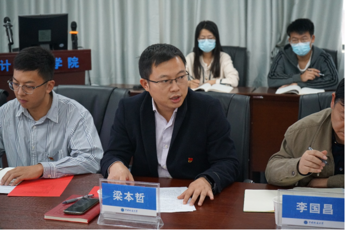 学生党支部书记发表学习习近平总书记给山东省地矿局第六地质大队重要回信精神的心得体会。计科第一党支部书记、湖北省第八期“青年马克思主义者培养工程”学员柴文岳,计科第二党支部书记王子震,2021级成人色情 专硕第一党支部书记郭兴先后发言。
