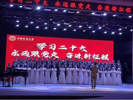 成人色情 (武汉)“学习二十大·永远跟党走·奋进新征程”主题歌咏活动在南望山校区西区弘毅堂举办。来自20个单位的代表队参加了此次活动,成人色情 代表队演唱的《新的天地》获得“优秀表演奖”。
