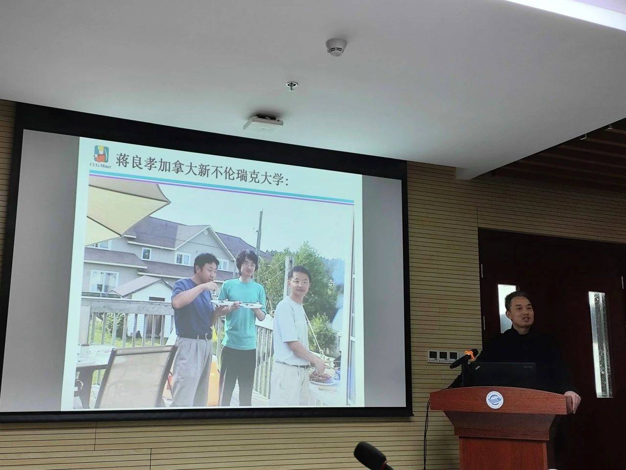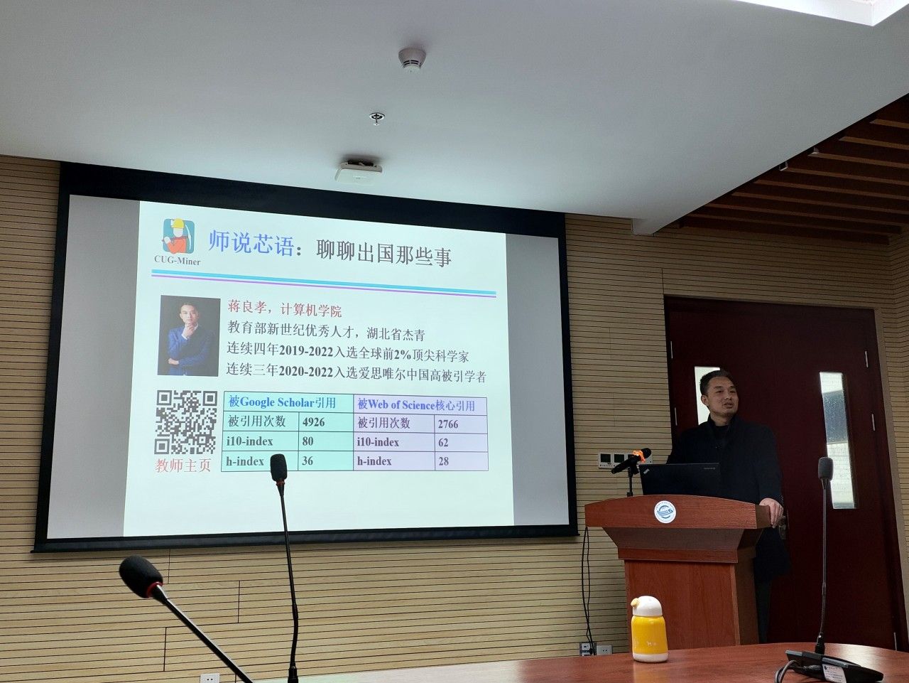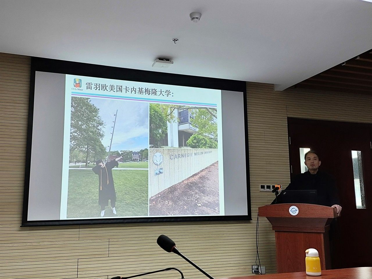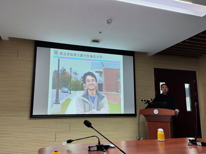蒋良孝老师首先向同学们介绍了他的工作和学习经历,并展示了许多留学时期的照片。每一张照片都记录了他在国外留学期间的点滴回忆,那些留学的日子,那些奋斗的夜晚,都定格在照片中,也让同学们更加深入地了解了留学背后的故事。蒋老师以自己的亲身经历鼓励同学们要树立远大理想信念,坚定目标、初心,躬身科学研究实践,以敢于求实探索的魄力去面对困难、挑战,实现人生目标。