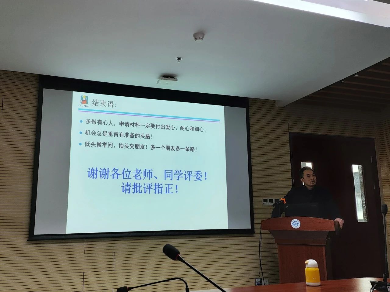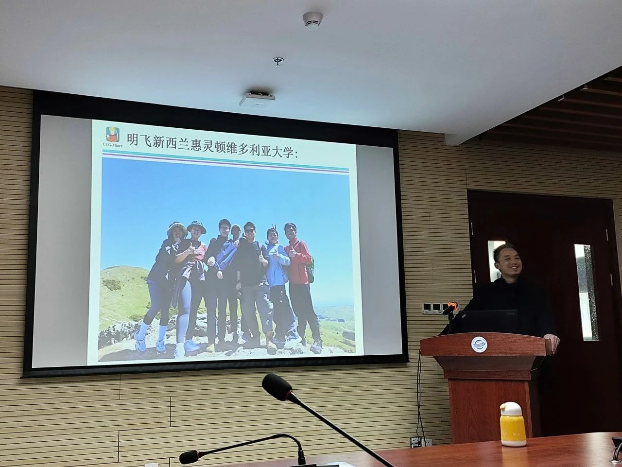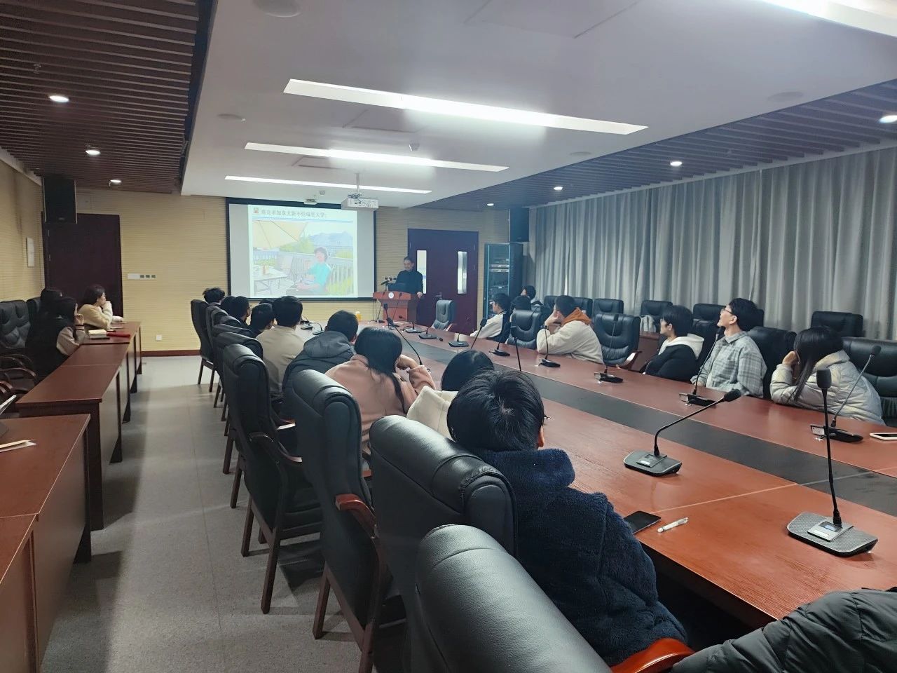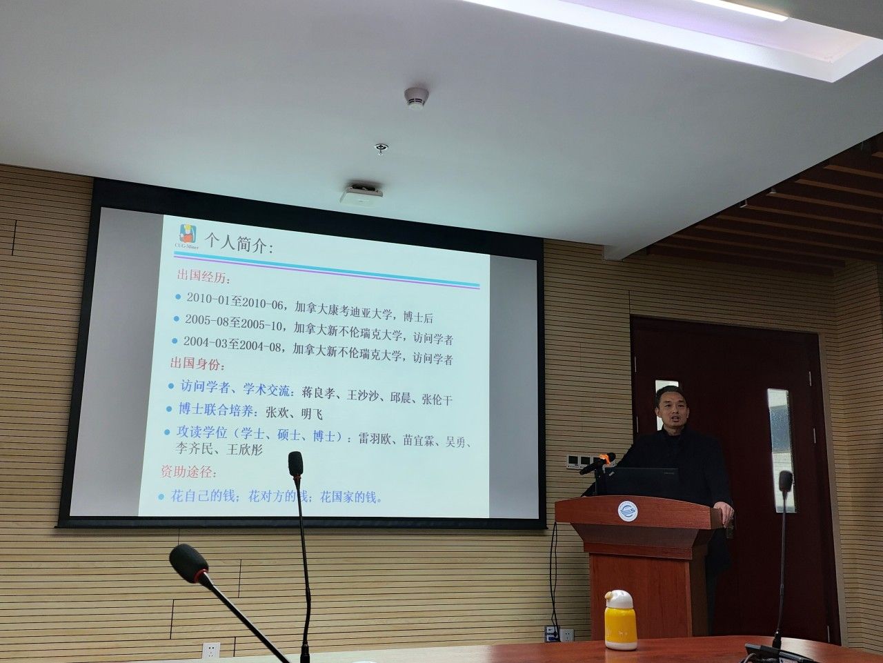 蒋良孝老师首先向同学们介绍了他的工作和学习经历,并展示了许多留学时期的照片。每一张照片都记录了他在国外留学期间的点滴回忆,那些留学的日子,那些奋斗的夜晚,都定格在照片中,也让同学们更加深入地了解了留学背后的故事。蒋老师以自己的亲身经历鼓励同学们要树立远大理想信念,坚定目标、初心,躬身科学研究实践,以敢于求实探索的魄力去面对困难、挑战,实现人生目标。