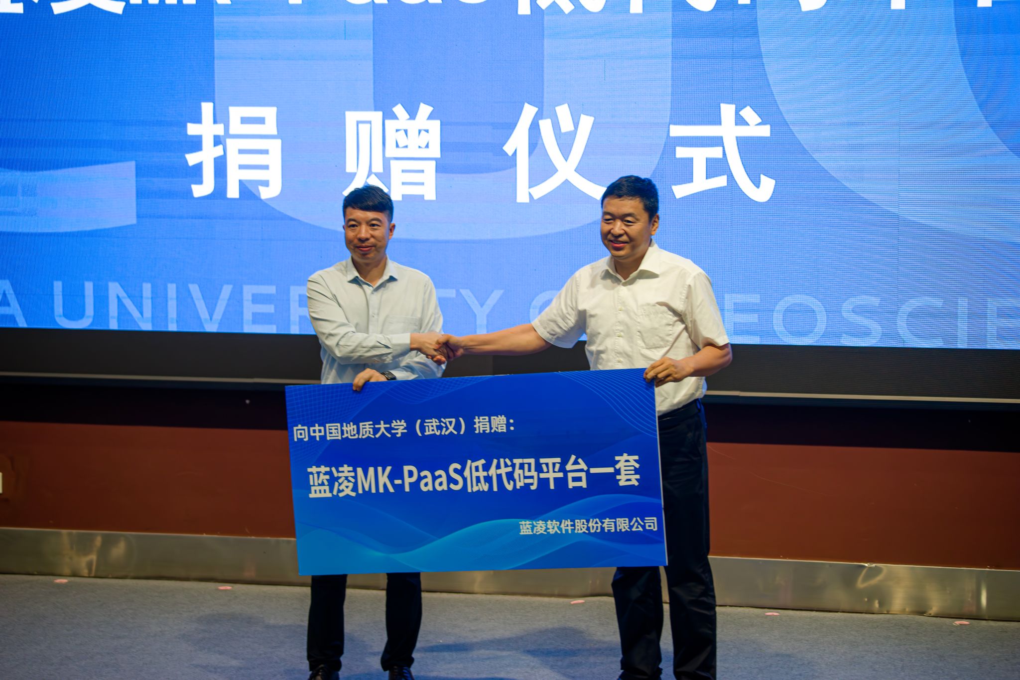 信息化办公室主任吴春明作为校方代表接收了蓝凌软件有限公司向学校捐赠的“蓝凌MK-PaaS低代码平台”