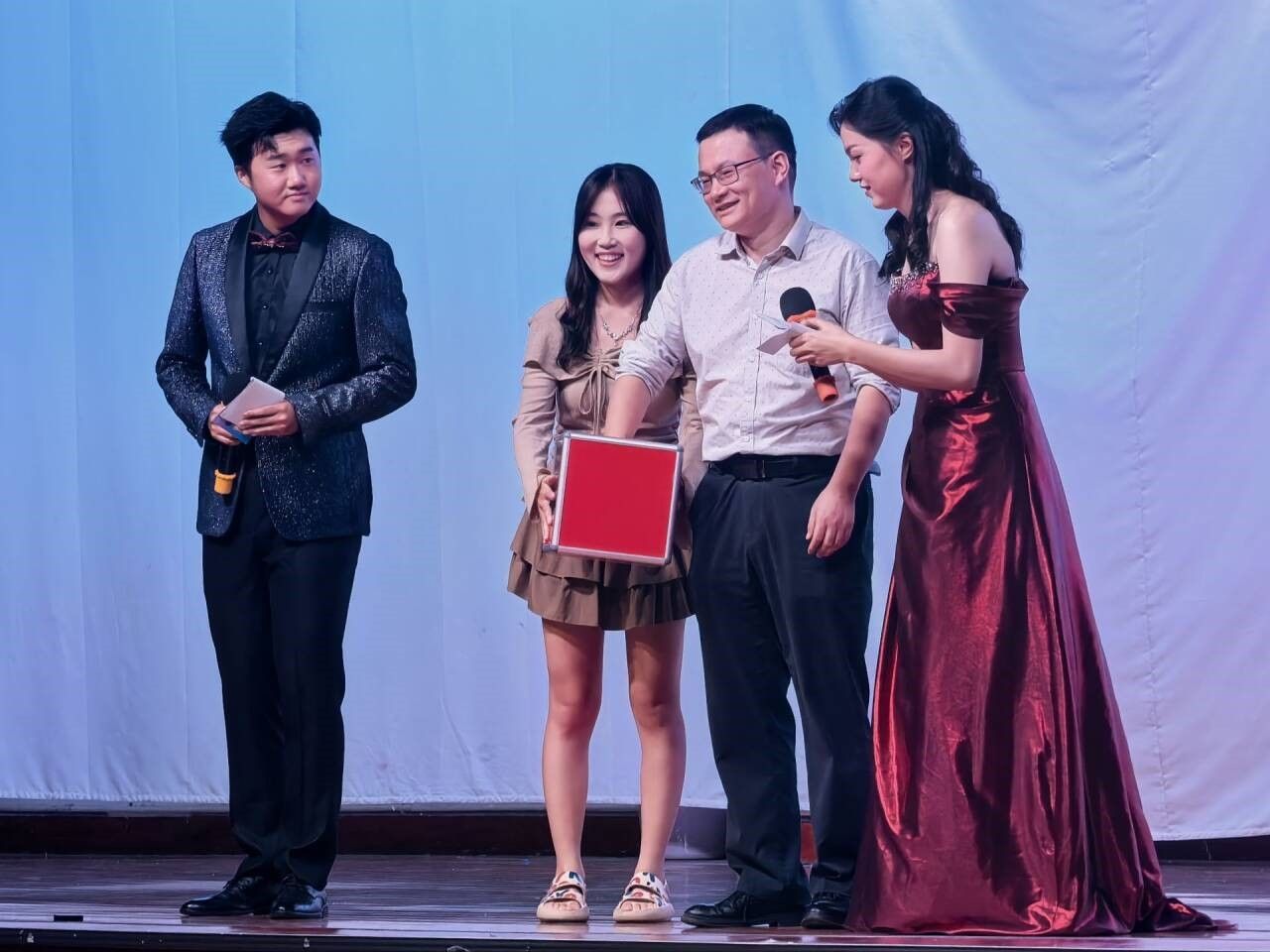最紧张刺激的抽奖环节过后,肖雅瑄同学带来了一首活力四射的歌曲《第一天》。欢快的旋律与积极向上的歌词,仿佛为大家崭新的征程吹响了号角。