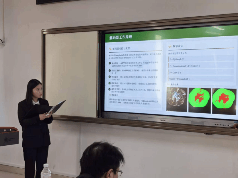 在第一会场中,徐瑞萌团队聚焦《地质遥感样本建立及其在深度学习中的应用》,推动地学与人工智能的深度融合;陈邦朴团队探索《基于图神经网络的地质模型智能重建方法》,为地质建模提供新思路;董翘楚团队则关注《低轨巨座卫星互联网路由安全攻击与防御》,研究具有重要现实意义;李雪汶团队的《面向城市洪涝灾害的轻量化多模态语义分割模型研究》体现了计算机技术在防灾减灾中的社会责任。