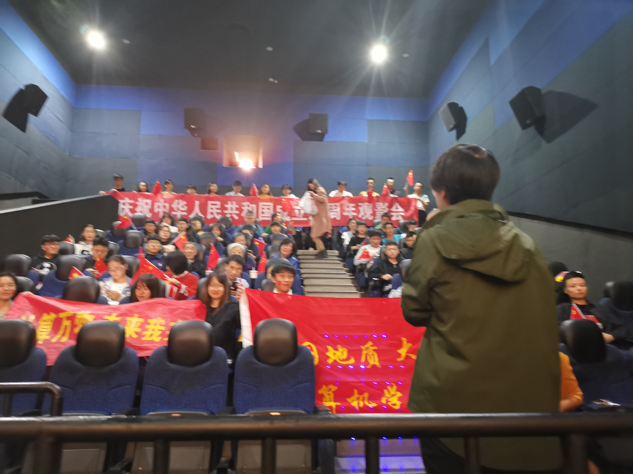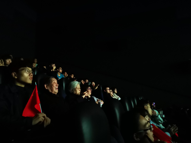 此次放映的影片是正在上映的爱国巨作《我和我的祖国》。下午六点整,新校区参与活动的同学们准时坐上了开往光谷的大巴车。在开往光谷市区的这段时间里,同学们齐唱爱国歌曲,爱国的热情与欢乐的气氛填满了整个巴士。