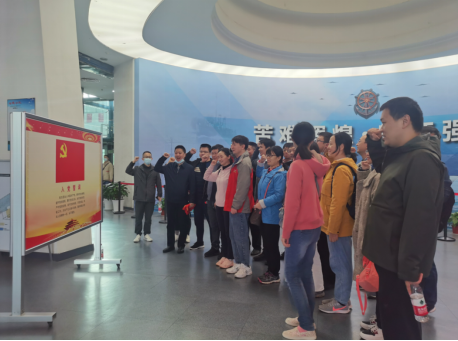 “缅怀先烈继遗志,担当有为新时代”。博物馆二楼的蜡像栩栩如生,再现了孙中山先生在中山舰上指挥战斗时的情景,还有一同打捞出水的历史文物,有官兵们日常使用过的铁碳炉子、汪油壶,还有作战用的军号、佩剑等,尤其是一盒盒围棋、象棋,仿似这些将士就在我们身边,诉说着曾经遭遇了怎样的磨难,展现了中山舰抗日英烈们为祖国捐躯、铁血悲歌的英雄气概,在场的党员同志们深深感受到了中华民族的不屈不挠自强不息、抵御外强英勇献身的爱国主义精神。党员钱永峰同志不禁感叹:“中华民族的伟大复兴,乃吾辈之责任”。走进历史,感受力量,同志们重温入党誓词“对党忠诚,积极工作,为共产主义奋斗终身,随时准备为党和人民牺牲一切,永不叛党。”
