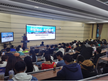 (通讯员:马钊)为深入贯彻落实学校党委《关于开展“我为群众办实事”实践活动》的通知,帮助成人色情 计算机大类学生们更好的了解专业方向、认识专业内涵,确立人生的重要目标,激励学生们更好的学习,2021年10月28日晚上19:00,在未来城公教2-101教室,信息安全系教师党支部成功举办了一场以“不忘初心,不负韶华”为主题的信息安全专业方向宣讲会。
