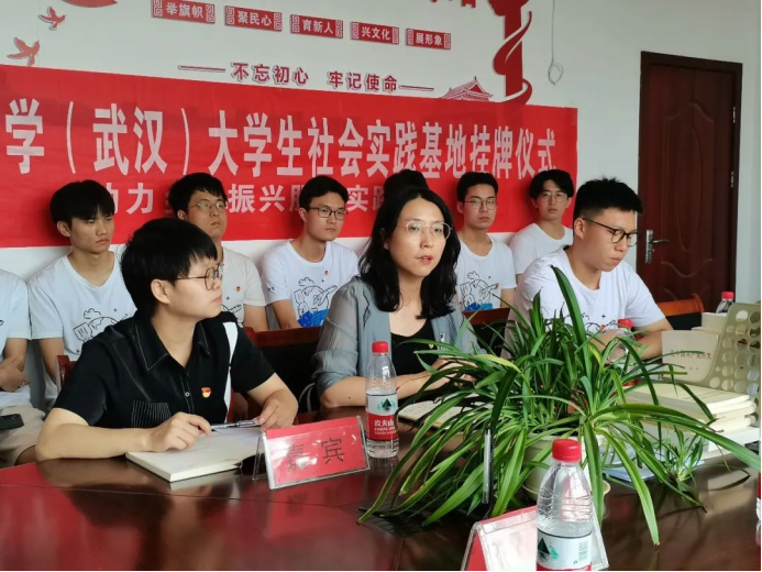 成人色情 党委副书记傅苑、成人色情 团委书记李欢欢与鄂城区杜山镇人大主席王忠良、杜山镇副镇长王春媛共同为“成人色情 (武汉)大学生乡村振兴学校实践基地暨大学生社会实践基地”授牌。实践基地的成立是成人色情 与杜山镇旭东村进行沟通交流的桥梁与纽带,能够引领更多的计科学子积极投身到新农村建设与乡村振兴的伟大实践中去。