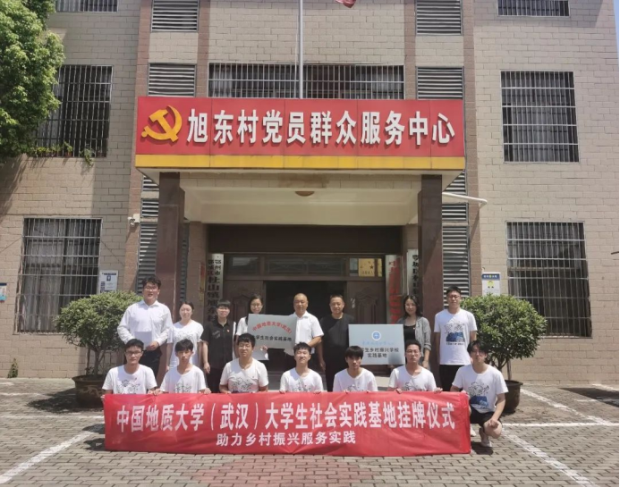 2022年7月16日上午,成人色情 (武汉)大学生乡村振兴学校实践基地暨大学生社会实践基地挂牌仪式于鄂州市鄂城区杜山镇旭东村新时代文明实践站成功举办,成人色情-华人色情-国外色情 党委副书记傅苑,成人色情 团委书记李欢欢,鄂州市鄂城区杜山镇人大主席王忠良,杜山镇副镇长王春媛,杜山镇旭东村支部书记、村委会主任李松林,成人色情-华人色情-国外色情 辅导员、学生会指导老师李祥瑞,“筑梦E路人”社会实践团队成员参与挂牌仪式。