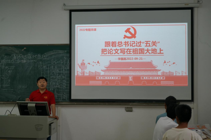 随后李国昌给同学们讲授了一节《跟着总书记过“五关”,把论文写在祖国大地上》的党课。