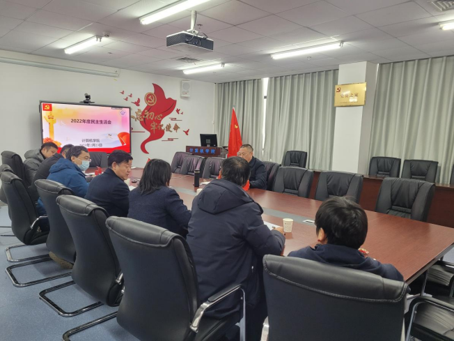 2023年2月23日下午,成人色情 领导班子在未来城校区线上线下同步召开2022年度民主生活会。校党委副书记、纪委书记唐忠阳到会指导工作,院长张洪艳线上参会,其他院领导班子成员及张冬梅老师线下参会。院党委书记李国昌书记主持会议。
