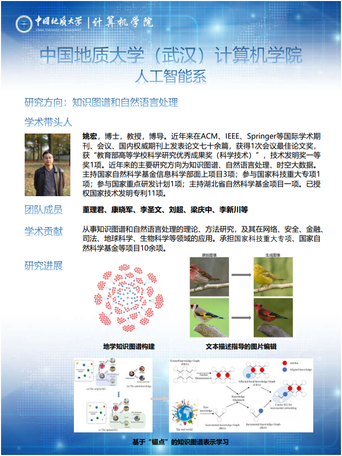 主要开展遥感信息智能提取、知识图谱、自然语言处理、数据挖掘与机器学习等方向的理论、方法研究,在城市典型要素识别、自然资源监测、数字城市、网络、安全、金融、地球科学、生物科学等方面形成特色应用。共有专任教师19人,其中成人色情 带头人3人;近年来,承担国家重点研发计划、国家自然科学基金重点项目、国家科技重大专项、国家自然科学基金等国家级和省部级项目20余项;在计算机类权威期刊及重要成人色情 会议、遥感信息处理权威期刊发表论文100多篇,获得省部级科技成果多项,获得国家发明专利20余项。(数据截至2021年4月)