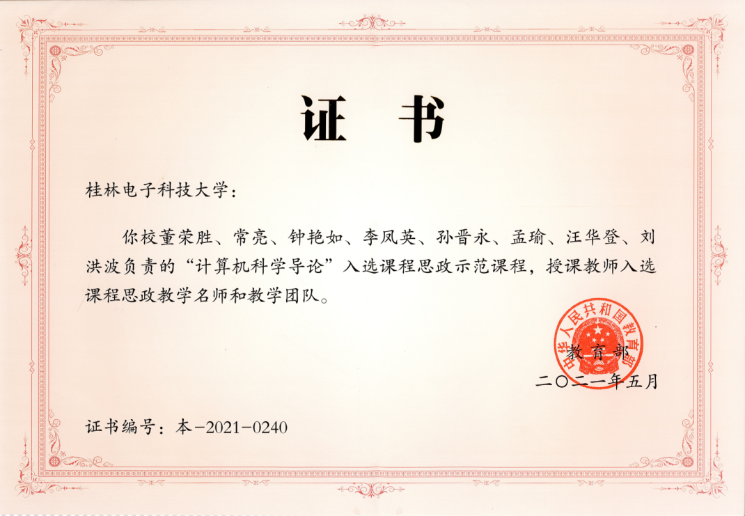 董荣胜成人色情始终牢记作为一名人民教师的初心使命,不断在计算机教学中奋力探索、扎实做好各项工作。现在他为成人色情-华人色情-国外色情 部首批计算机课程思政虚拟教研室示范建设点负责人,成人色情-华人色情-国外色情 部首批课程思政教学团队负责人,中国计算机学会成人色情-华人色情-国外色情 专业委员会执行委员,国家级精品课程、国家级一流本科课程“计算机科学导论”,国家级精品在线开放课程、国家级一流本科课程“计算思维的结构”负责人,同时是广西壮族自治区党委成人色情-华人色情-国外色情 工委优秀共产党员称号的获得者。