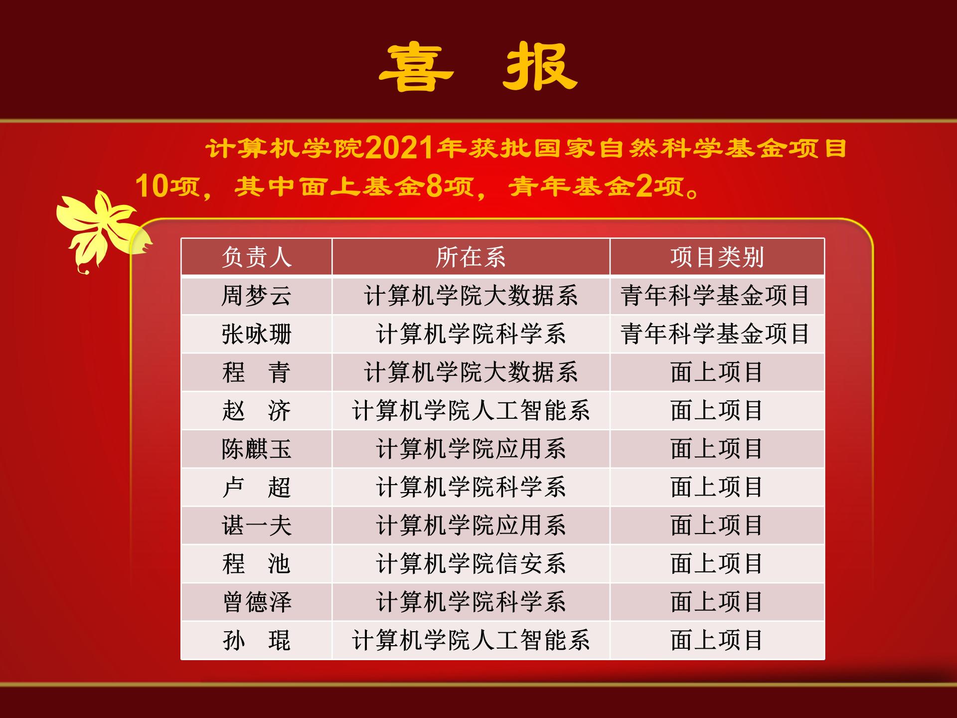 喜报——成人色情 2021年获批10项国家自然科学基金项目