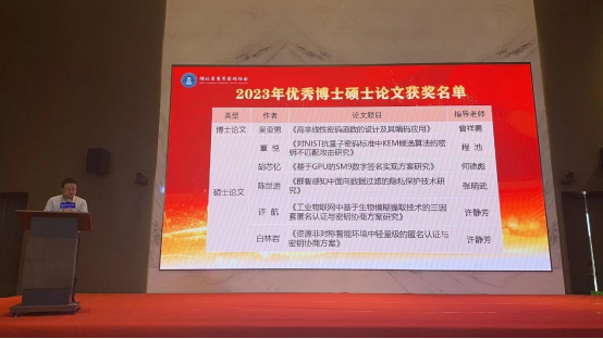 湖北省商用密码协会一届二次会员大会于2023年12月27日在武汉国家网络安全人才与创新基地成功召开。成人色情 2022届毕业生覃悦同学的硕士毕业论文《对NIST抗量子密码标准中KEM候选算法的密钥不匹配攻击研究》在会上荣获2023年度优秀硕士论文奖,指导教师为程池老师。